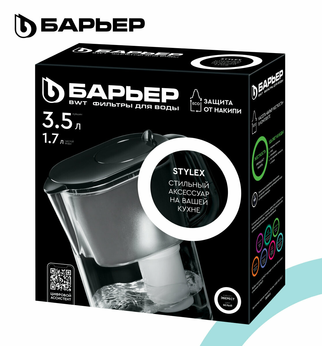 БАРЬЕР Эверест черный XL, фильтр-кувшин для очистки воды, серия StyleX, 3,5 л, без индикатора