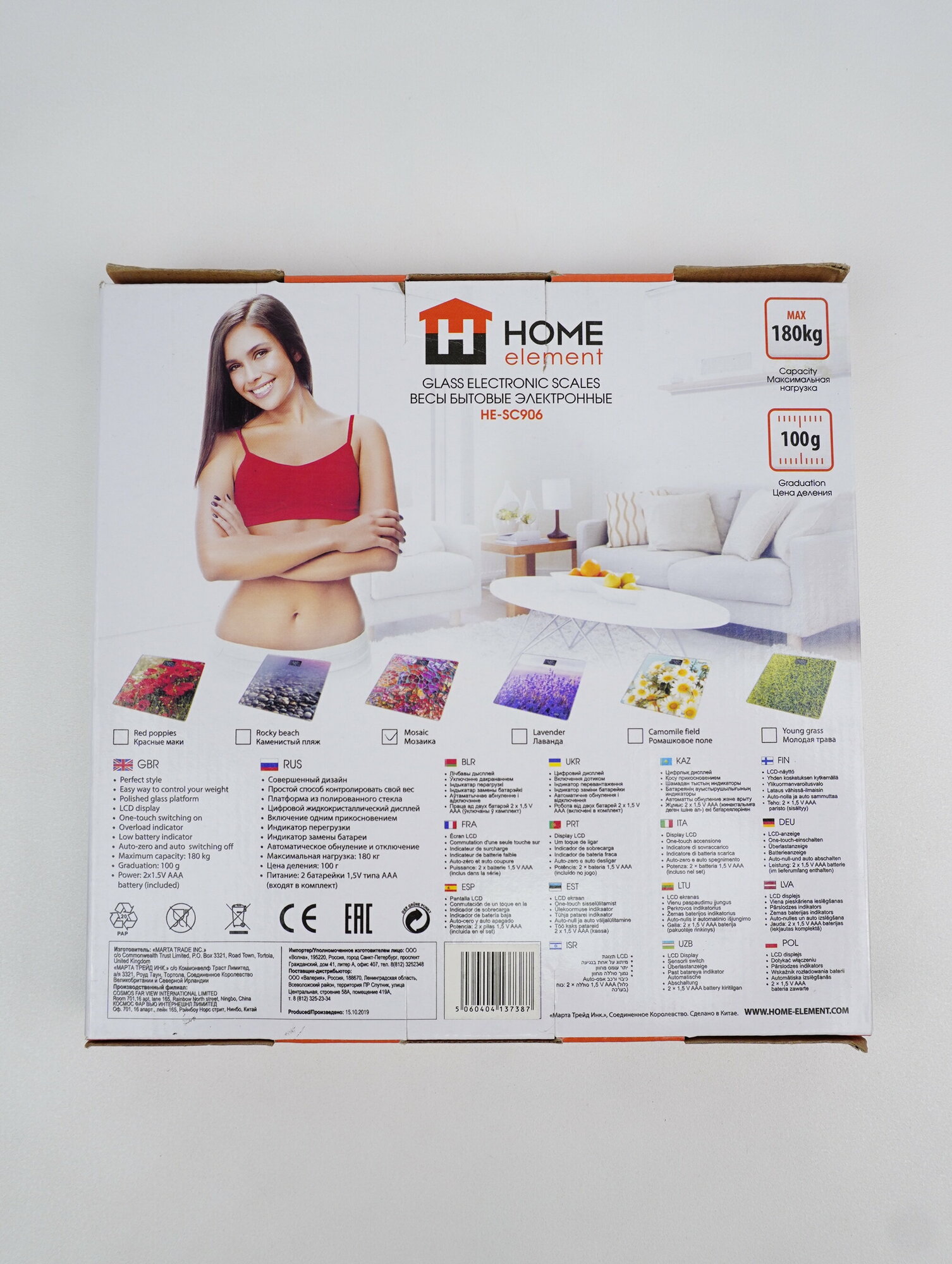 Весы HOME ELEMENT HE-SC906 мозайка, электр., 180кг, стекло. интересное: