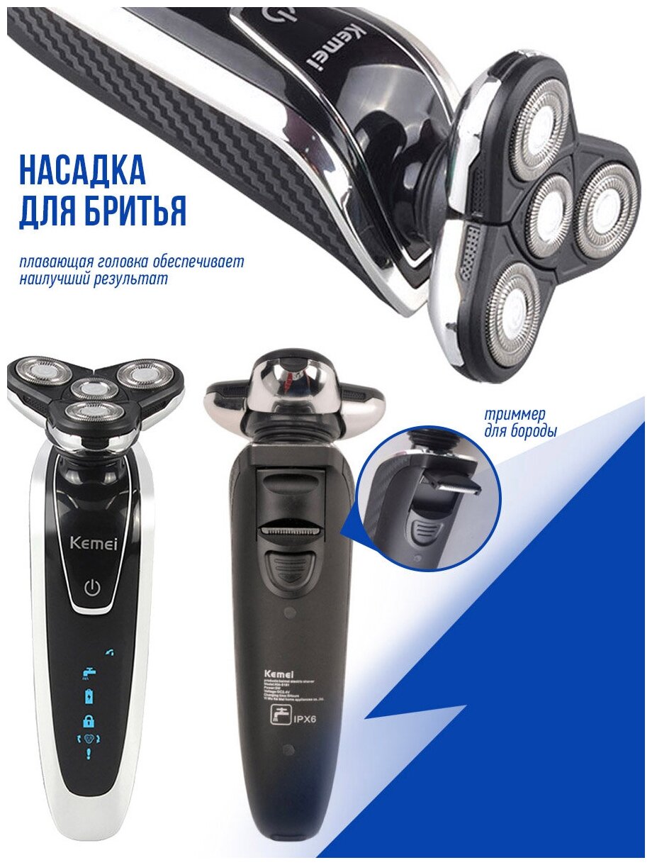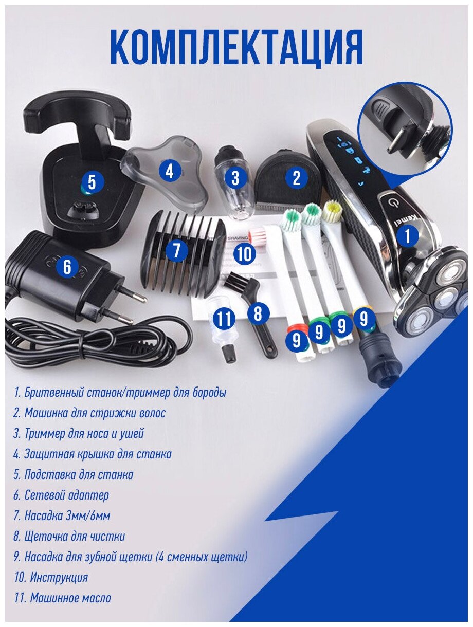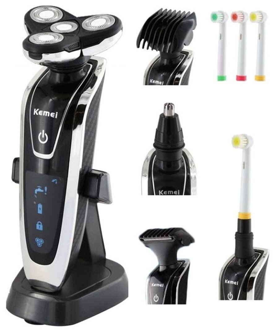 Электробритва 4в1 Kemei + Машинка для стрижки волос + Триммер + Электрическая зубная щетка