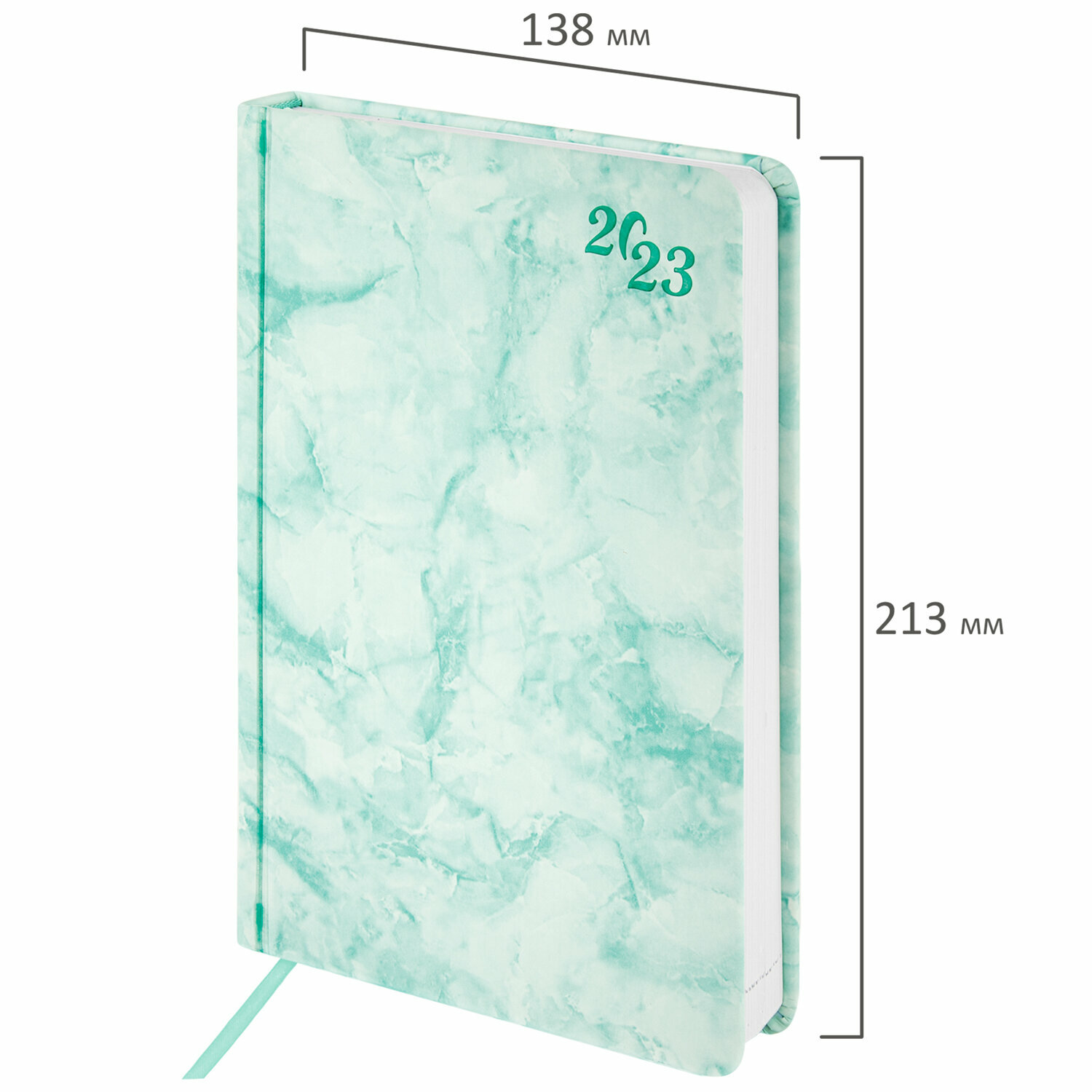 Ежедневник-планер (планинг) / записная книжка / блокнот датированный на 2023 год формата А5 (138x213 мм) Brauberg Marble, под кожу, бирюзовый