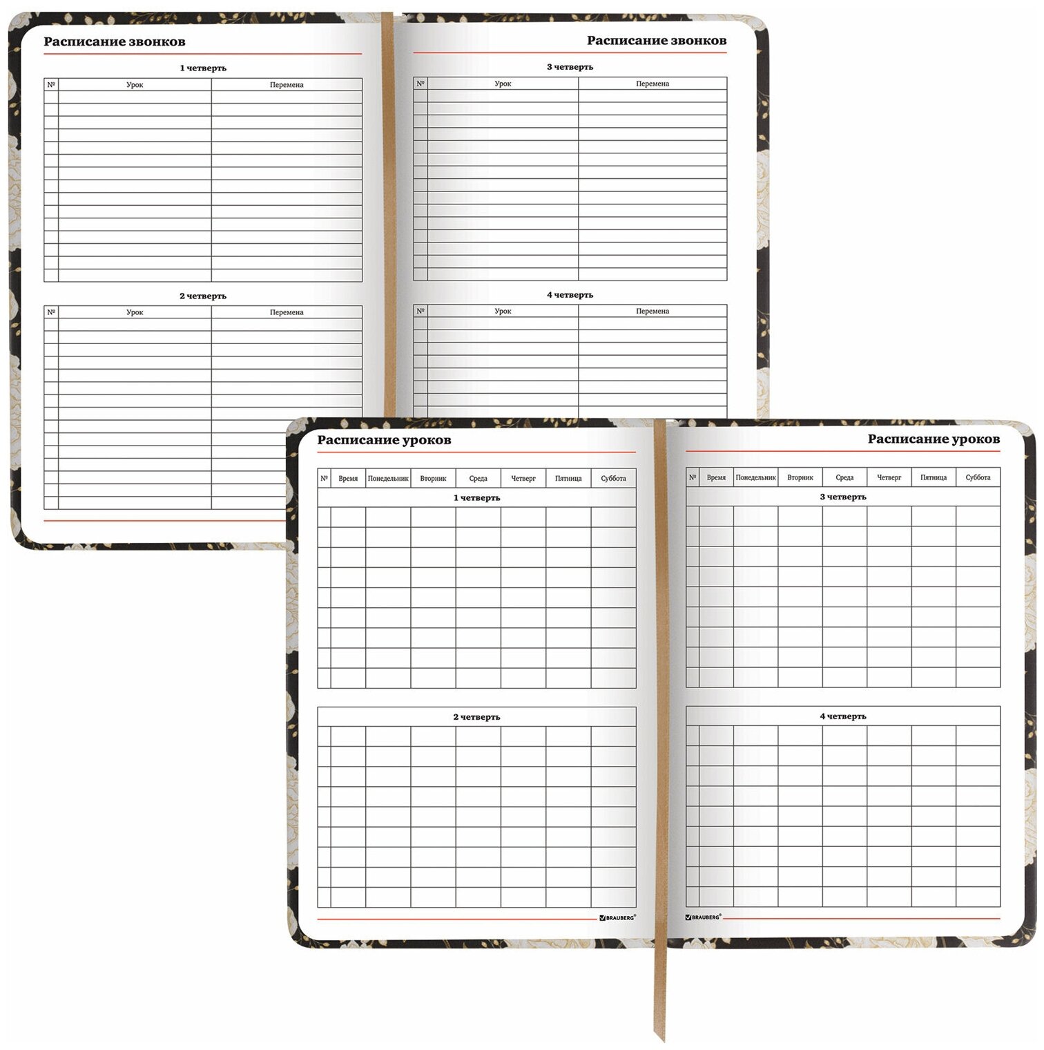 Ежедневник учителя специализированный А5 215х145 мм, BRAUBERG, под кожу, 144 л., "Цветы на черном", 112707