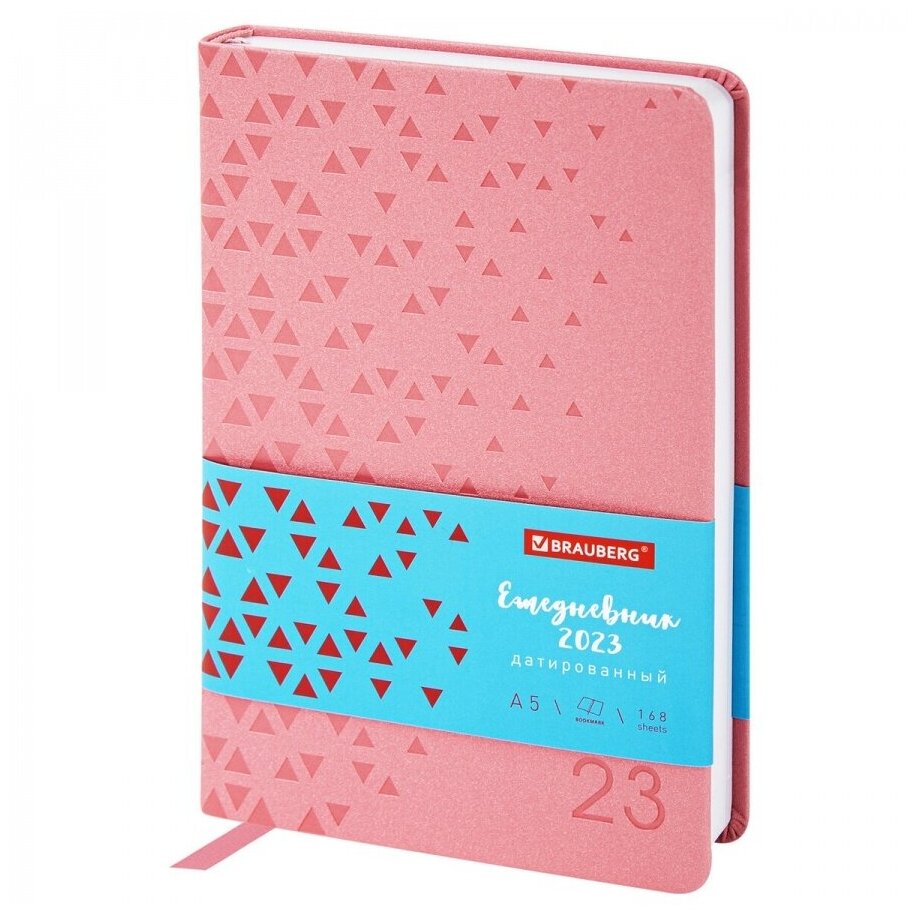 Ежедневник датированный на 2023 год А5 Brauberg Glance (168 листов) обложка кожзам "под кожу", розовый, 138х213мм (114097)
