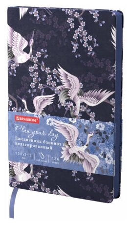 Ежедневник недатированный А5 (138х213 мм), BRAUBERG VISTA, под кожу, гибкий, 136 л., "Cranes", 112025 В комплекте: 1шт.