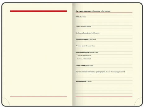 | Плюсы: | отличный переплет, шикарный цвет. Листы в полоску, мне удобно, что самому нужно проставлять даты, а можно этого и не делать. на первых страницах даже карта есть. |
