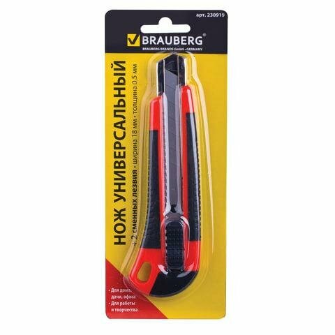 Нож канцелярский Brauberg 18 мм, автофиксатор, резиновые вставки, 2 лезвия (230919)