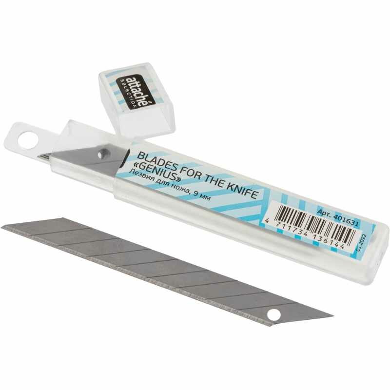 Лезвия сменные для канцелярских ножей Attache Selection Genius, 9 мм, сегментированные, 10 штук в упаковке