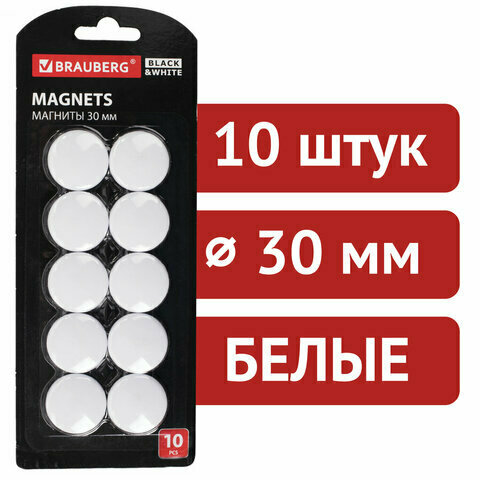 Магниты Brauberg Black&White, усиленные, 30 мм, 10 шт, белые (237467)