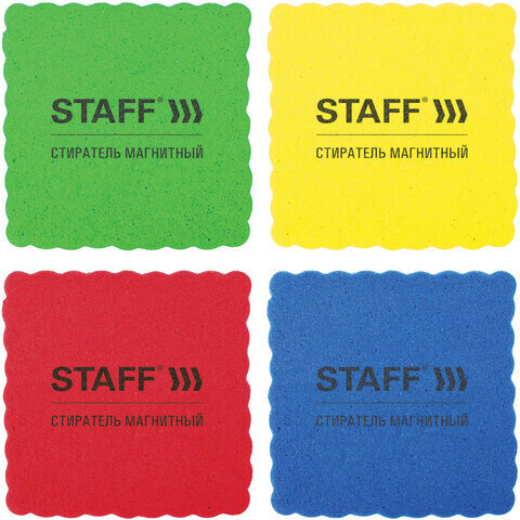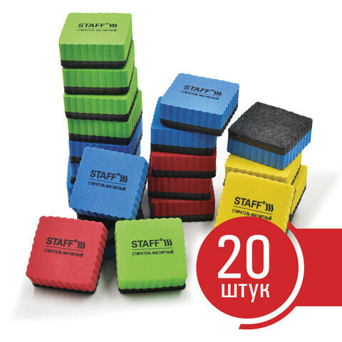 Стиратели магнитные для магнитно-маркерной доски, 50х50 мм, комплект 20 ШТ., STAFF "Basic", ассорти, 237506
