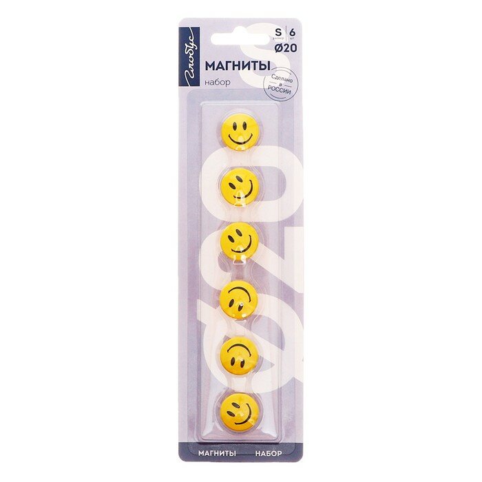 Магниты для доски GLOBUS "Смайлики", 20 мм, 6 шт, желтые (02201007) интересное: