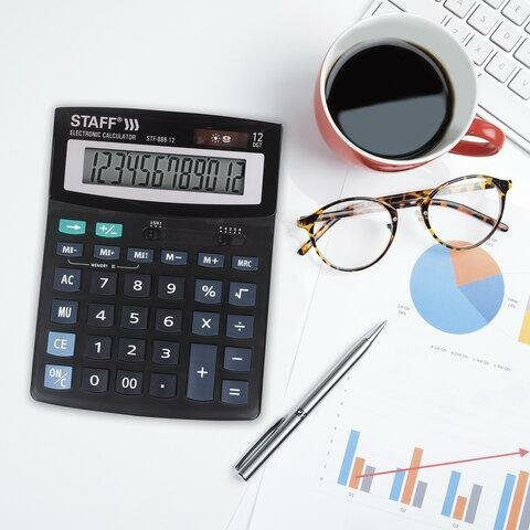 Калькулятор бухгалтерский STAFF STF-888-12, черный/серебристый