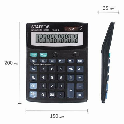 Калькулятор настольный STAFF STF-888-12 (200х150 мм), 12 разрядов, двойное питание, 250149, 250149