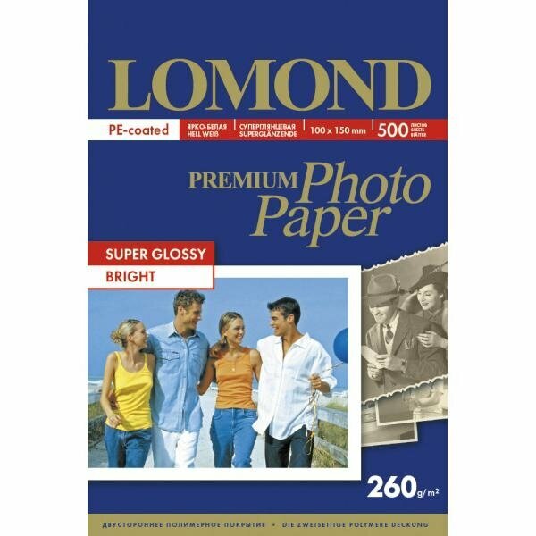 Фотобумага Lomond 10 x 15 см, 260 г/м2 (500 листов) суперглянцевая, ярко-белая (Super Glossy Bright) (1103105)