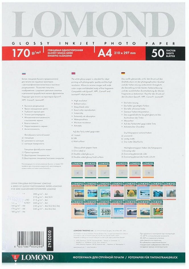 Lomond 0102142 Фотобумага односторонняя глянцевая А4, 170г м2, 50 листов