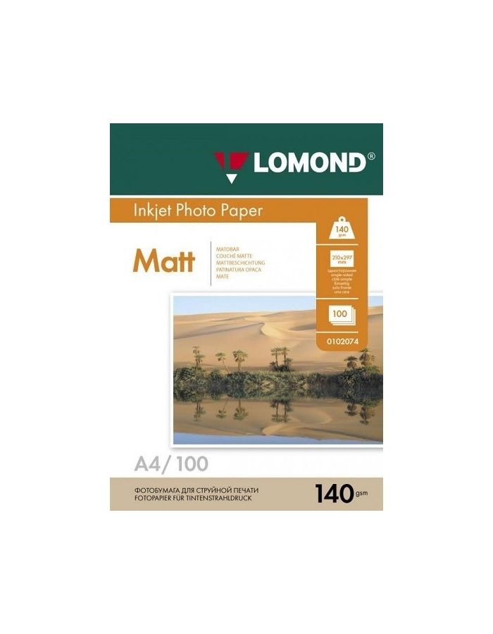 Фотобумага матовая, А4, 140 г/м2, односторонняя, 100 листов, LOMOND, 0102074