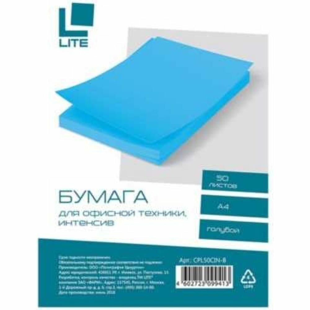 Lite Бумага офисная цветная, 50 листов А4, 70 г/м2, интенсив голубой