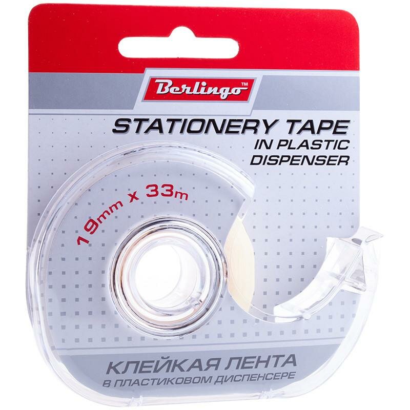 Клейкая лента канцелярская Berlingo 19 мм*33 м прозрачная, в пластиковом диспенсере, европодвес