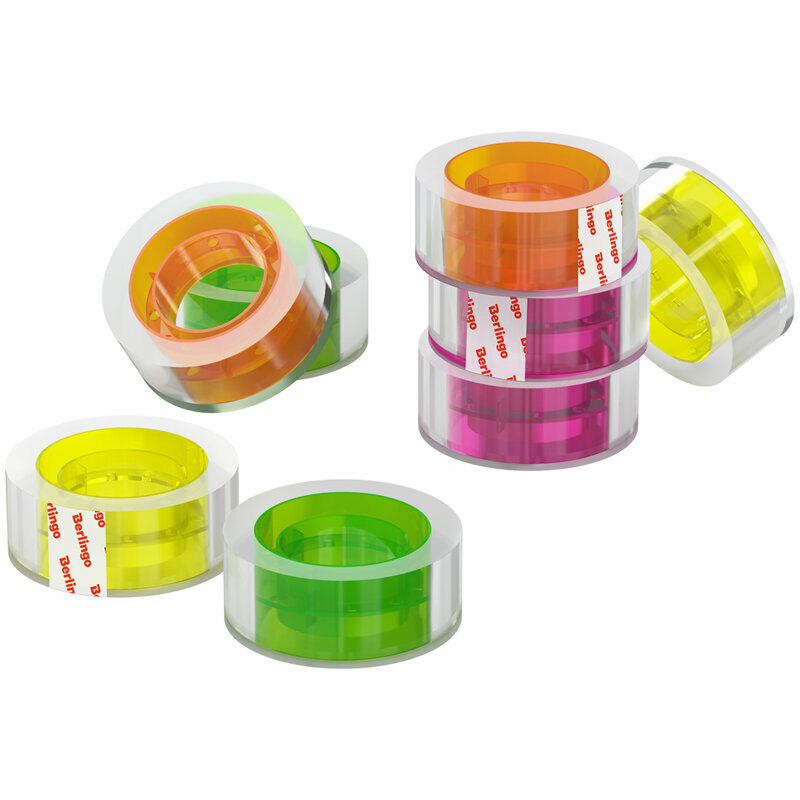 Клейкая лента 19мм*33м, Berlingo, кристально-прозрачная с неоновой втулкой, 8 штук