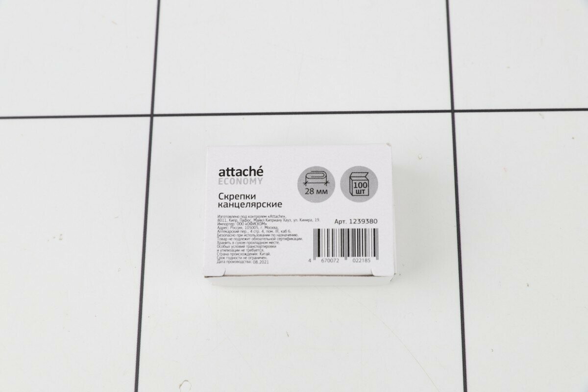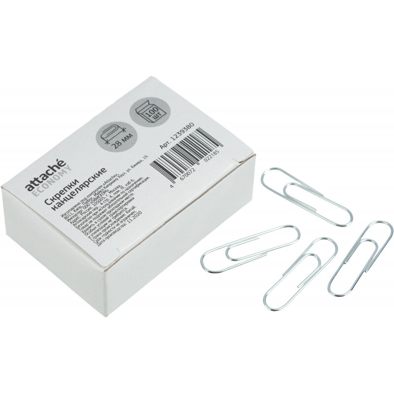Скрепки Attache Economy стальные, 28 мм, негофрированные, 100 шт. в уп 1239380