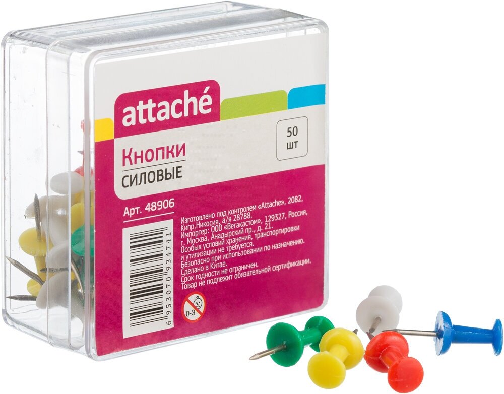 Кнопки для пробковых досок Attache силовые, 50 штук в упаковке (48906)