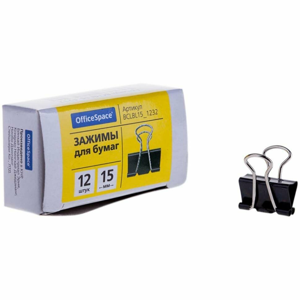 OfficeSpace Зажимы для бумаг 15 мм 12 шт (1 упаковка)