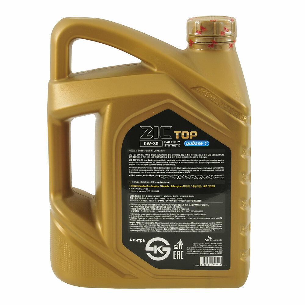 ZIC 162680 ZIC TOP 0W30 (4L)_масло моторное! синт.\API SL, ACEA A5/B5, VCC 95200377