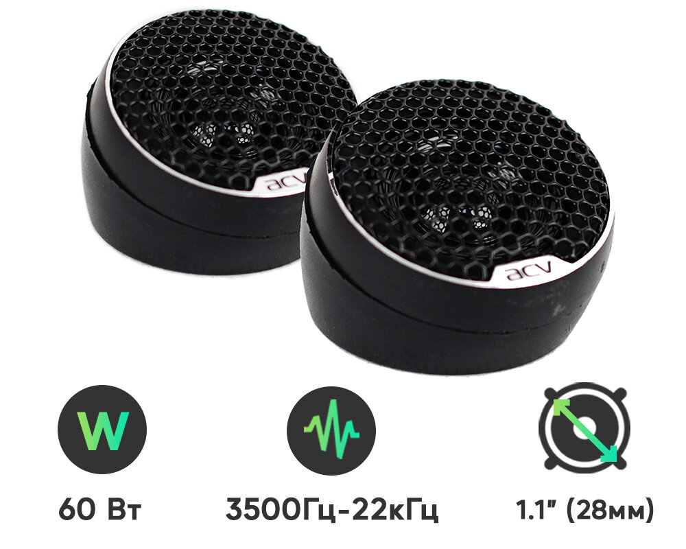 Твитеры ACV TWS-13, 1.1" (2.8см), 15/60Вт, 3500-22000Гц, 2шт
