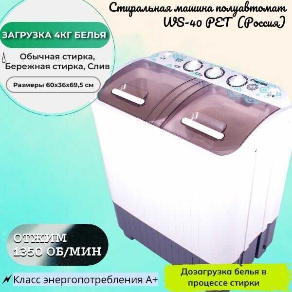 Стиральная машина славда WS-40PET/бел, 4кг, отжим, 60*36, мех. упр., 2 прогр.//Россия/ интересное: