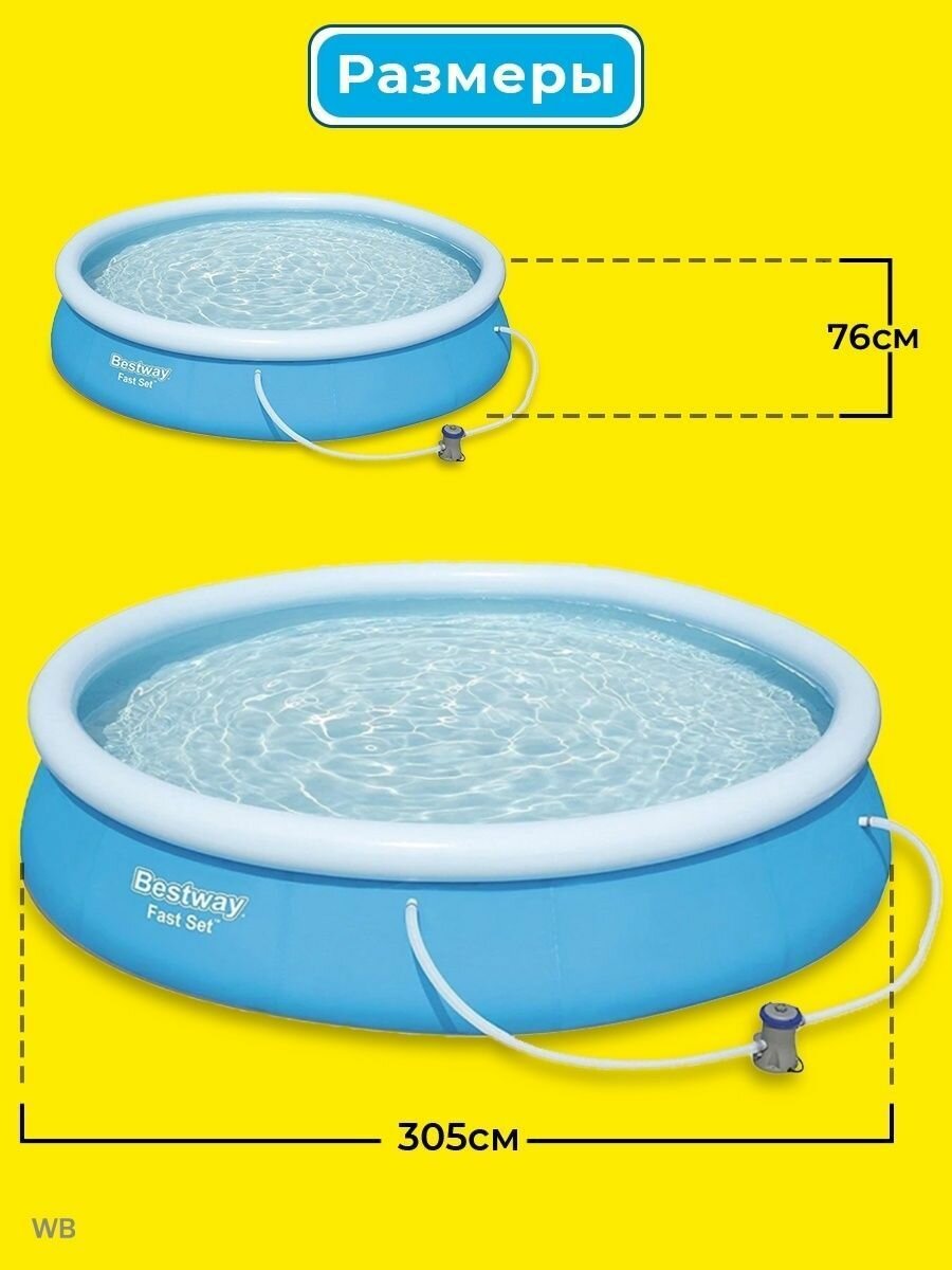 Бассейн надувной Bestway Fast Set с фильтр-насосом, 305 x 76 см, 3638 л