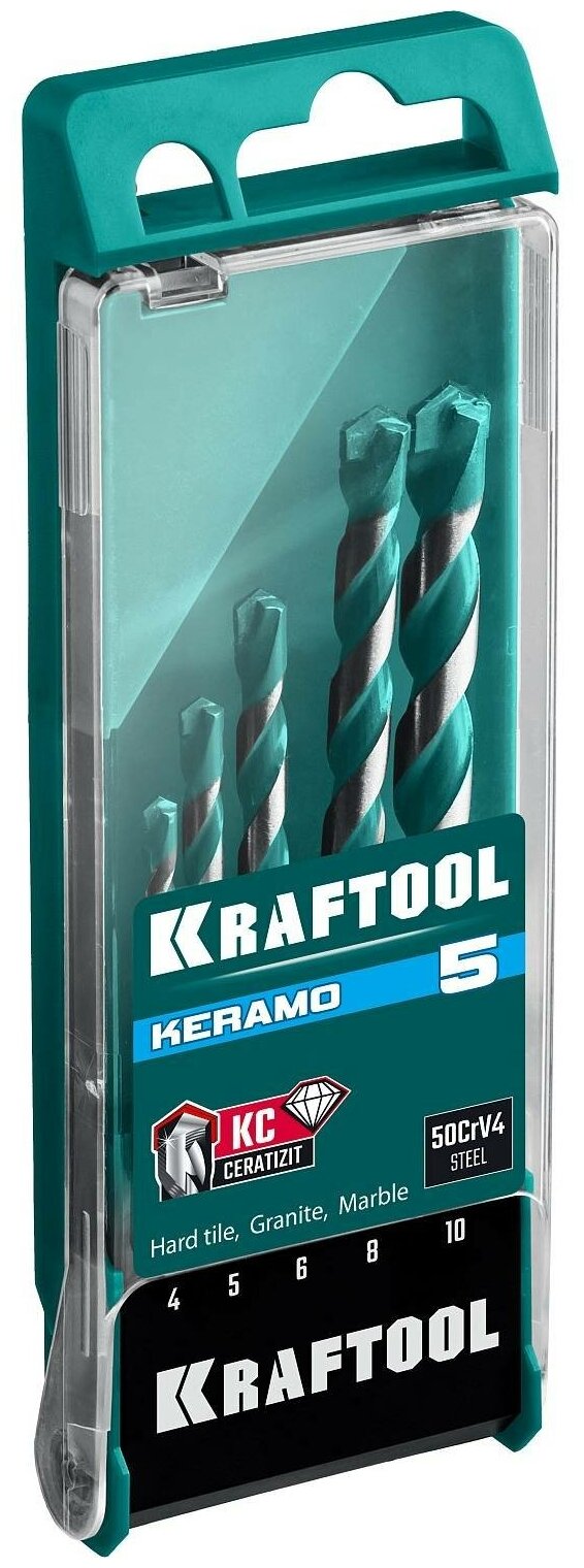 Купить KRAFTOOL KERAMO 5 шт 4-5-6-8-10 мм набор сверл по керамограниту с твердосплавной пластиной, (29175-H5)