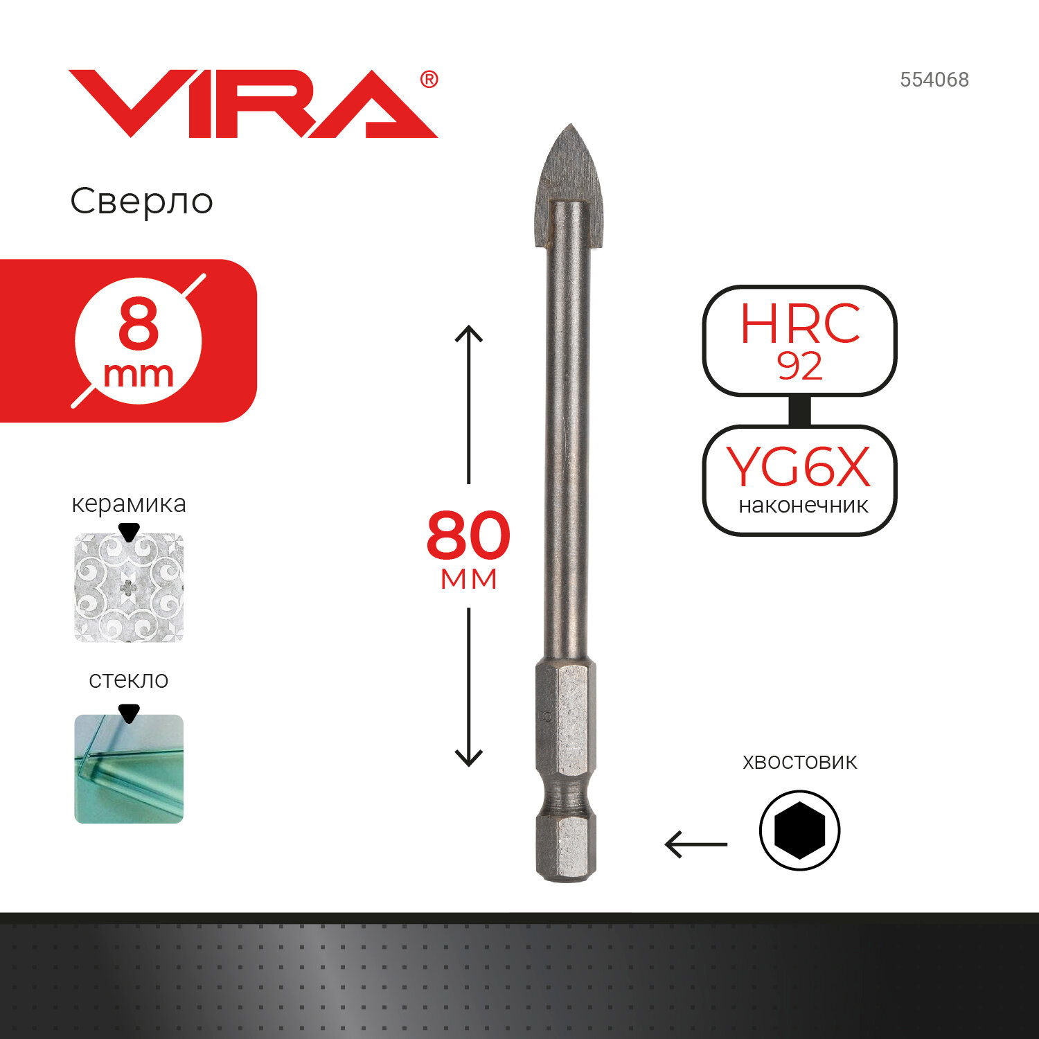 Сверло по стеклу и керамике HEX 8 мм VIRA 554068 интересное: