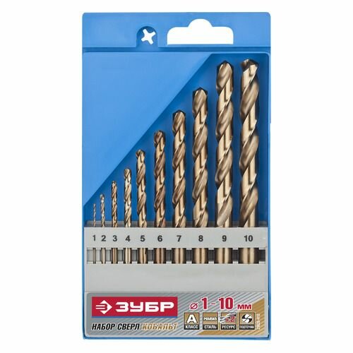 ЗУБР кобальт 10шт(1-10мм), Набор сверл по металлу, сталь Р6М5К5, класс А, 29626-H10, Серия Профессионал