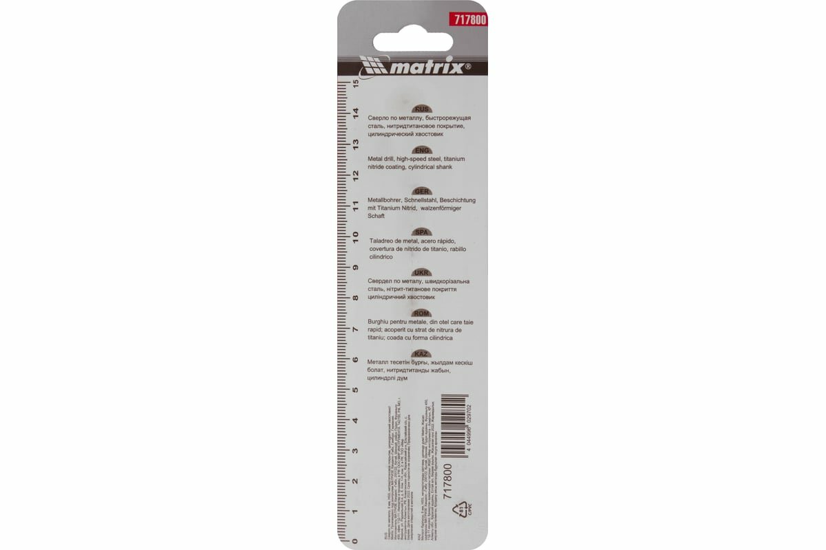 Сверло По Металлу, 8 Мм, Hss, Нитридтитановое Покрытие, Цилиндрический Хвостовик Matrix 717800 Matrix 717800 Matrix арт. 717800