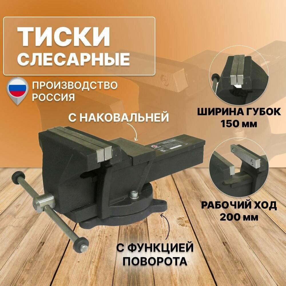 Тиски Калибр слесарно-поворотные ТПСН-150 И (150мм, наковальня) интересное: