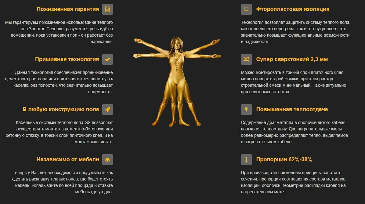 Электрический тёплый пол под плитку Золотое сечение GS-320-2,0