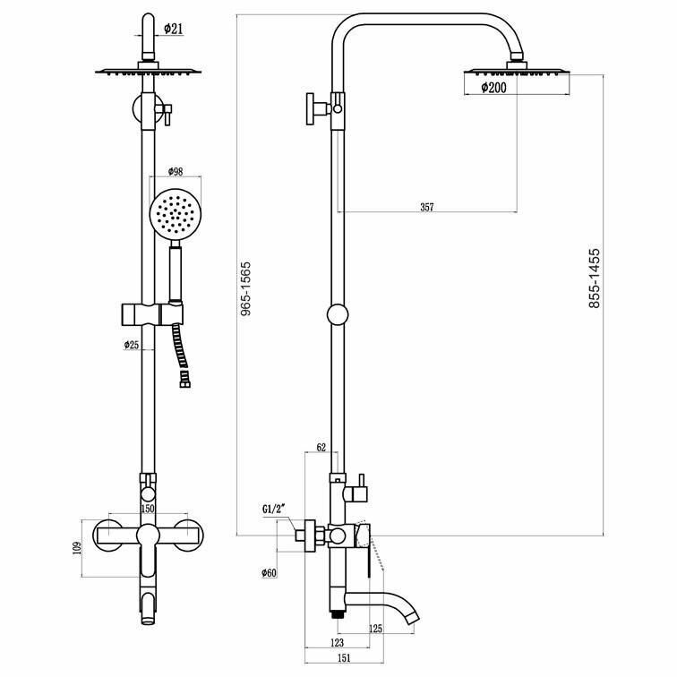 | Дополнительная информация | размер верхнего душа 20 см; размер головки ручного душа 9.8 см |