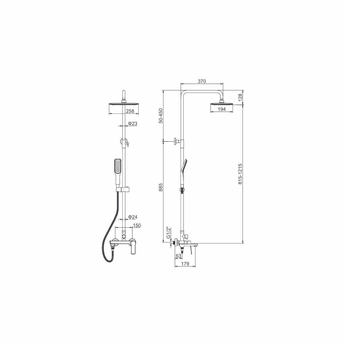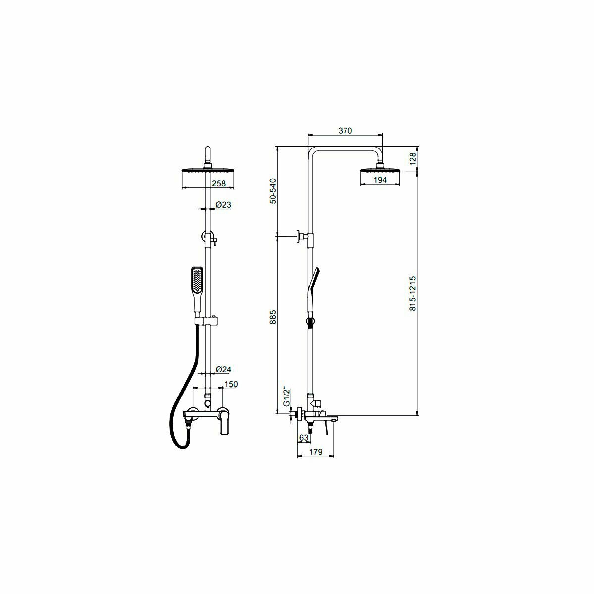| Дополнительная информация | высота стойки для душа: 1343 мм; длина верхнего душа: 194 мм; ширина верхнего душа: 258 мм |