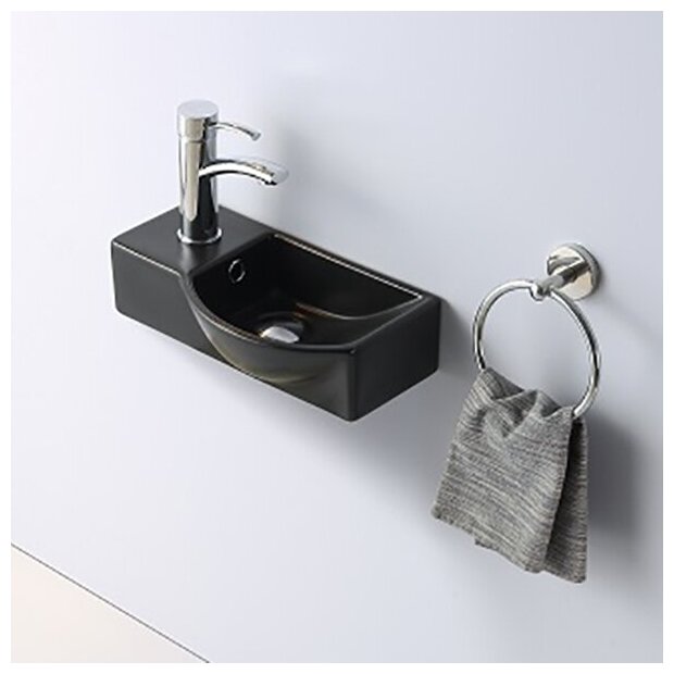 Купить Раковина подвесная Ceramalux CL7947ARMB правая черная матовая с внутренним переливом