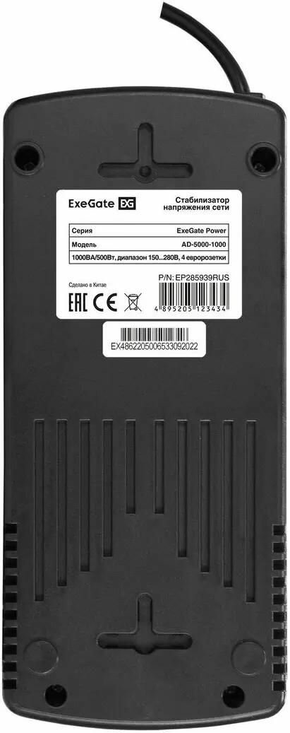 Стабилизатор ExeGate Power AD5000-1000 (1000VA/500W, диапазон 150...280В, 4 евророзетки)EP285939RUS