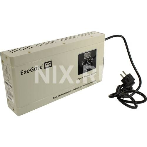 Стабилизатор напряжения настенный ExeGate Master AV-500 (500ВА, 140-260В, цифр. индикация вход/вых. напряжения, 5 уровней защиты, задержка, метал.корпус, евророзетка, RTL)