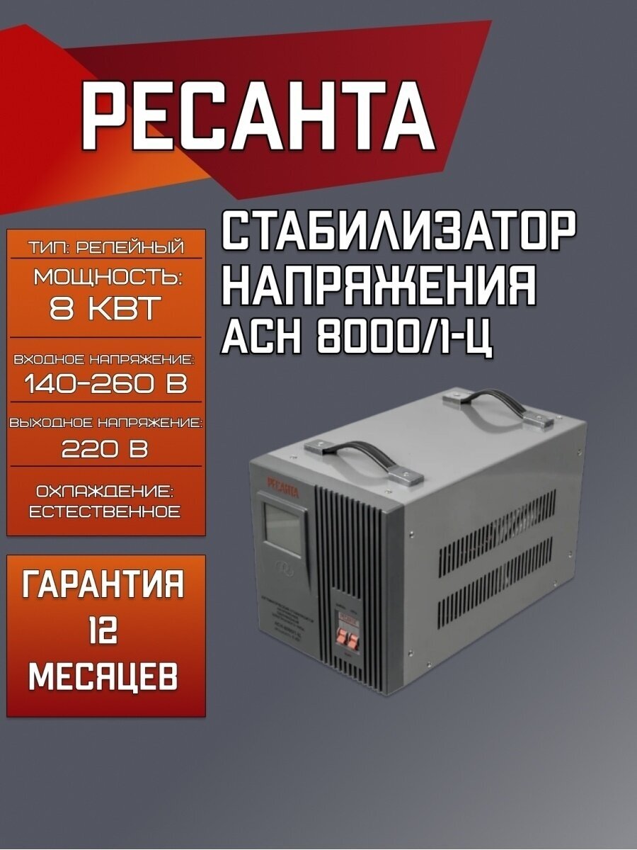 Стабилизатор напряжения однофазный РЕСАНТА АСН- 8000/1-Ц