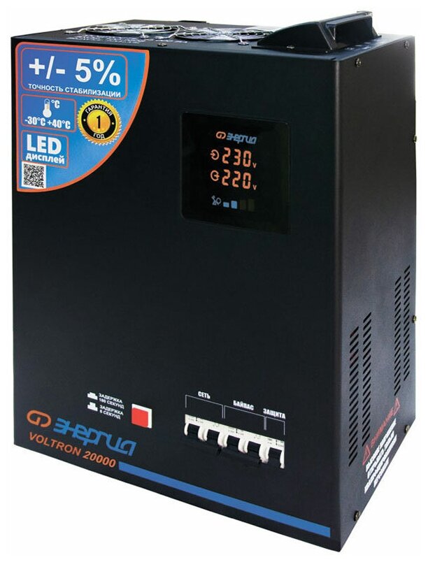 Cтабилизатор Энергия Voltron 20000 по точности: 105-265В по защите: 95-280В .