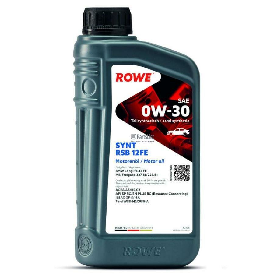 Моторное масло ROWE HIGHTEC SYNT RSB 12FE SAE 0W-30 1л 20305-0010-99