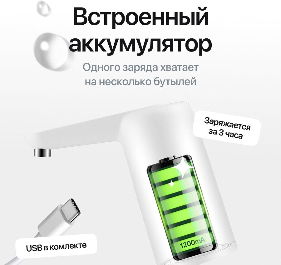 Помпа для воды электрическая на бутыль 19 литров, диспенсер для воды на аккумуляторе белая интересное:
