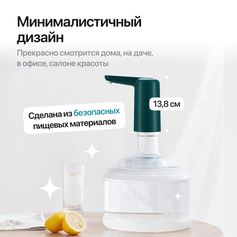 Помпа для воды электрическая на бутыль 19 литров, диспенсер для воды на аккумуляторе зеленая интересное: