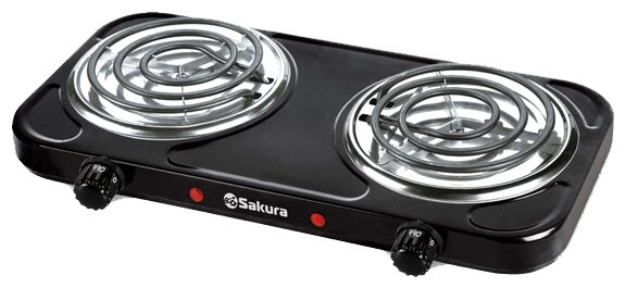 Плитка электрическая Sakura ПЭ-03В, 2000 Вт, 2 конфорки, черная