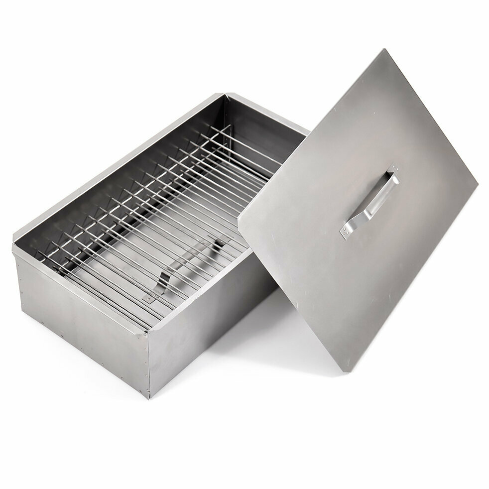 Коптильня двухъярусная 380Х280Х170 мм с поддоном для сбора жира / коптилка / сталь 0,8 мм / горячие копчение рыбы / домашняя / для дачи