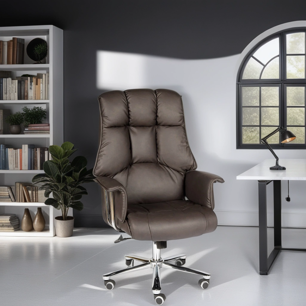 Компьютерное кресло для руководителя Norden Президент / сталь + хром / темно-коричневая экокожа