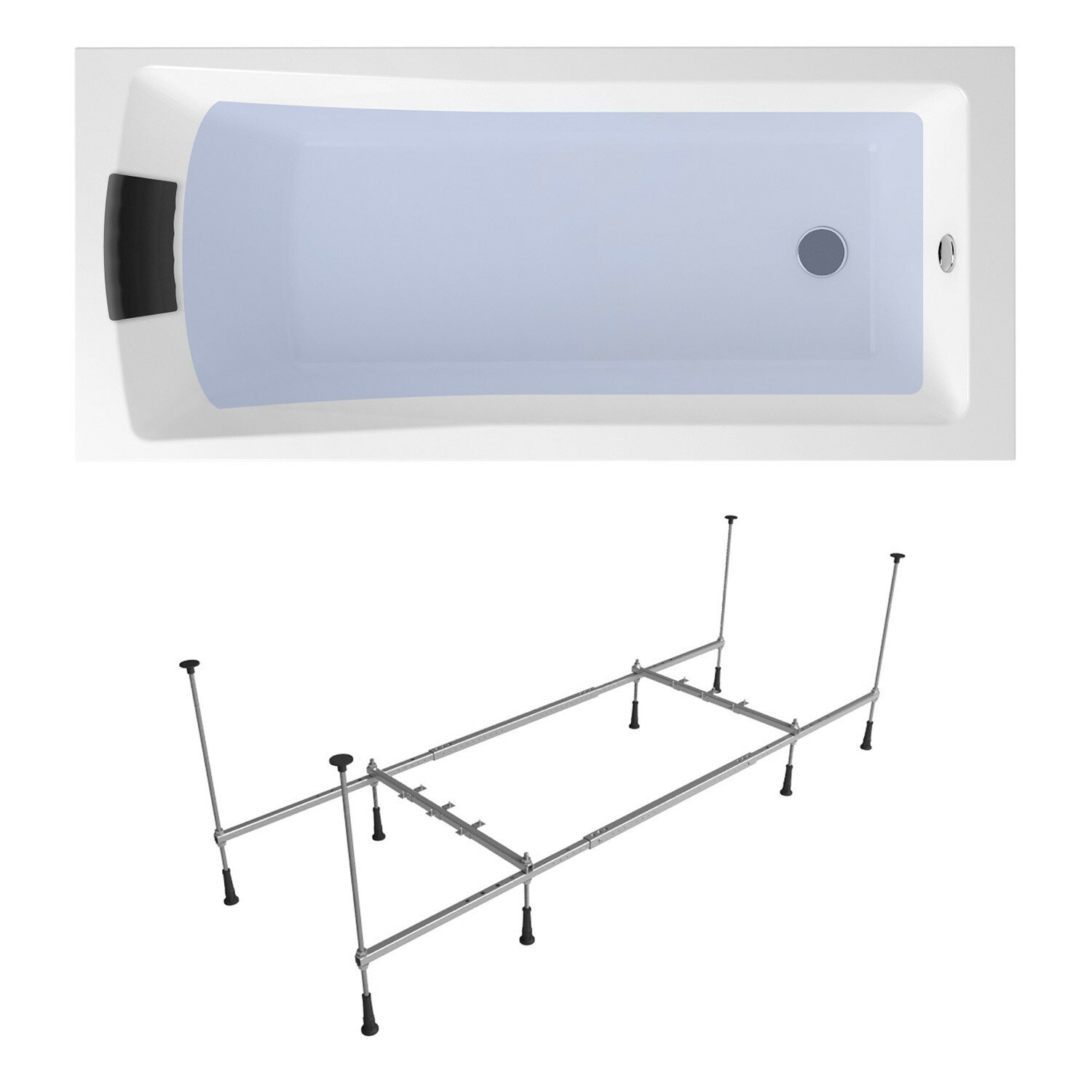 Ванна акриловая 180х80 Lavinia Boho One S1-3701008P в наборе 3 в 1: прямоугольная ванна 180 х 80 см, усиленный металлический каркас, мягкий подголовник