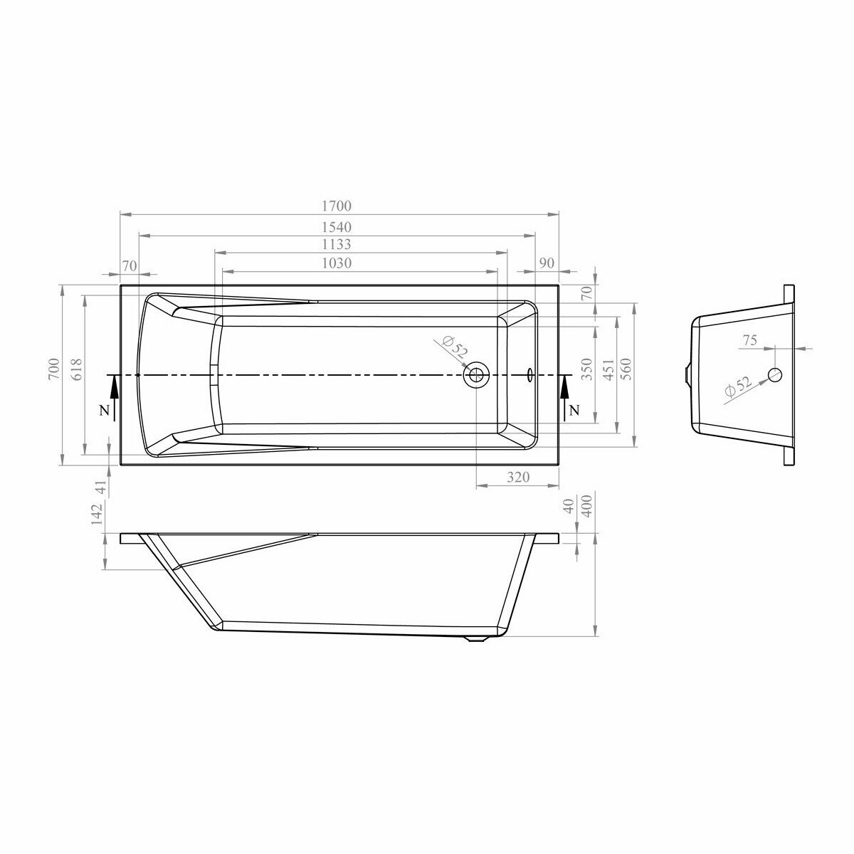 Акриловая ванна 170x75 Lavinia Boho One 37010075: прямоугольная ванна 170 x 75 из литьевого акрила с усиленным армированным корпусом