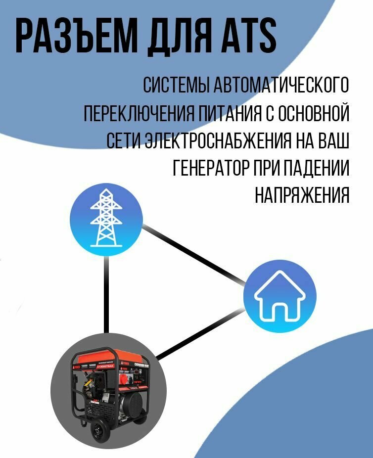 | Дополнительная информация | Высокие пусковые токи, АВР, Увеличенный топливный бак |